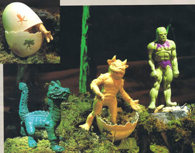There are 6 Manglors monsters, each packed with its own dinosaur-like Egg, complete with a rocklike base and figure stand. This dramatic new packaging innovation—providing storage, portability, and a playset all in one—adds play value to a proven hit concept in novelty figures.